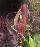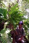 | Araceae family Anthurium cordatum x hookeri Sidjinn Robust epiphytic and lithophytic herb of semi-evergreen seasonal forest and ravine cliffs. Rare on Gros Piton and very rare Choiseul ravines. Found occasionally among dense populations of parental species. Seeds do not develop. A similar hybrid to Anthurium x selloum of St. Johns. To be confirmed. |