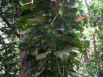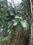 | Araceae family Epipremnum pinnatum (Linnaeus) Engler in H.G.A. Engler, Pflanzenr. IV. 23B (Heft 37): 60. 1908. Bas.: Pothos pinnatus Linnaeus (1763). Syn.: Epipremnum aureum (Linden & André) Bunting (1964). Syn.: Scindapsus pinnatus (L.) Schott (1832). Naturalized robust vine of wet spots at lower elevations, especially by rivers. Quite common, becoming more common. Native to Asia. Also a cultivated ornamental. The yellow and green leaf type is often considered var. aureum. The plain green leaf type also exists but is less common. Replacing the native Monstera adansonii in some river valleys, therefore showing signs of becoming invasive. |