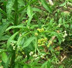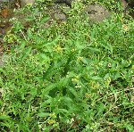 | Asteraceae family Epaltes brasiliensis de Candolle, Prodr. 5: 461-462. 1836. Kamami Indigenous rare herb of floodplain, Piaye River, Laborie and very wet roadside, Saltibus, Choiseul. Guadeloupe, Martinique, St. Lucia, Mesoamerica, South America. Also cultivated (Belle Vue, Vieux Fort) as a herbal medicine. Crushed leaves odiferous. Flexible stem bends when river floods. |