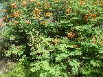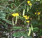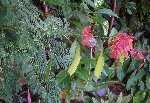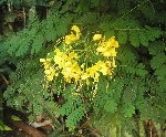| Fabaceae-Caesalpinioideae family Caesalpinia pulcherrima (Linnaeus) Swartz, Observ. Bot. 166. 1791. Bas.: Poinciana pulcherrima Linnaeus (1753). Flè makata. Dwarf poinciana. Escaped/naturalized shrub of dry open areas around houses and the sea-shore. Common on Anse L'Ivrogne delta, Choiseul, otherwise rare. Cultivated and naturalized throughout tropics, of unknown origin. Also a cultivated ornamental. Herbal medicinal uses. Its presence on the lower slopes of Gros Piton is worrying - potentially invasive. |