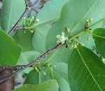 | Erythroxylaceae family Erythroxylum oxycarpum O.E. Schulz, Symb. Antill. 5(2): 203. 1907. Indigenous tree of coastal deciduous seasonal forest, base of Gros Piton to La Pointe, Choiseul. St. Lucia, Grenada, Mesoamerica, South America. Discovered April 2012. Similar to the very common Erythroxylum havanense which also exists in the same area. Flowers form on new growth. Flowers open one by one, thus the flowering and fruiting period is longer than with Erythroxylum havanense. Damaged leaves stain red-brown. |