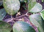 | Myrtaceae family Eugenia gregii (Swartz) Poiret in J.B.A.P.M. de Lamarck, Encycl. Suppl. 3: 126. 1813. Bas.: Myrtus gregii Swartz (1788). Lesser Antillean endemic. Quite rare shrub of shady riversides at lower elevations and ridges in lower montane rainforest. Guadeloupe, Dominica, Martinique, St. Lucia. Underside of leaf very white. On many taxonomic databases the species epiphet is greggii. However Swartz named it as gregii after the collector John Greg, owner of Hillsborough Estate, Dominica - thus greggii is an orthographic variant. |